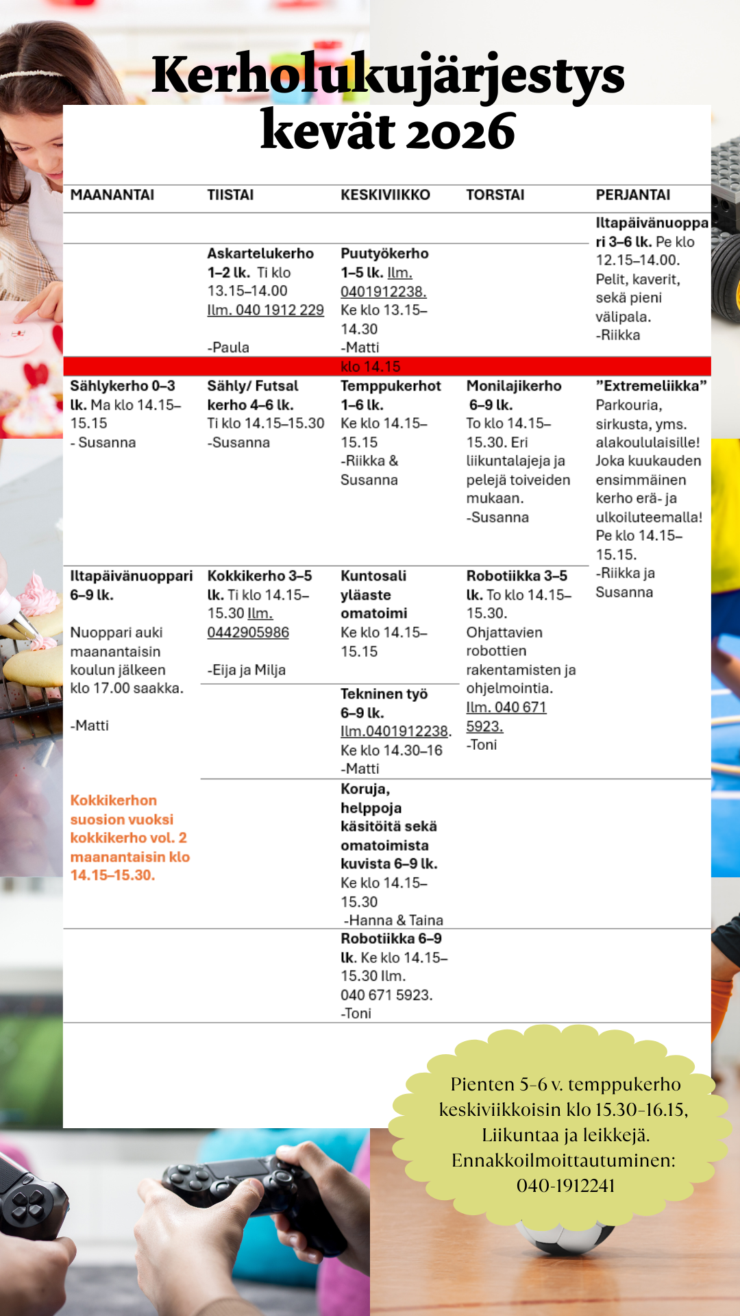 Lisätietoa kerhoista: Hyvinvointikoordinaattori Riikka Teeriaho Puh. 0401912241