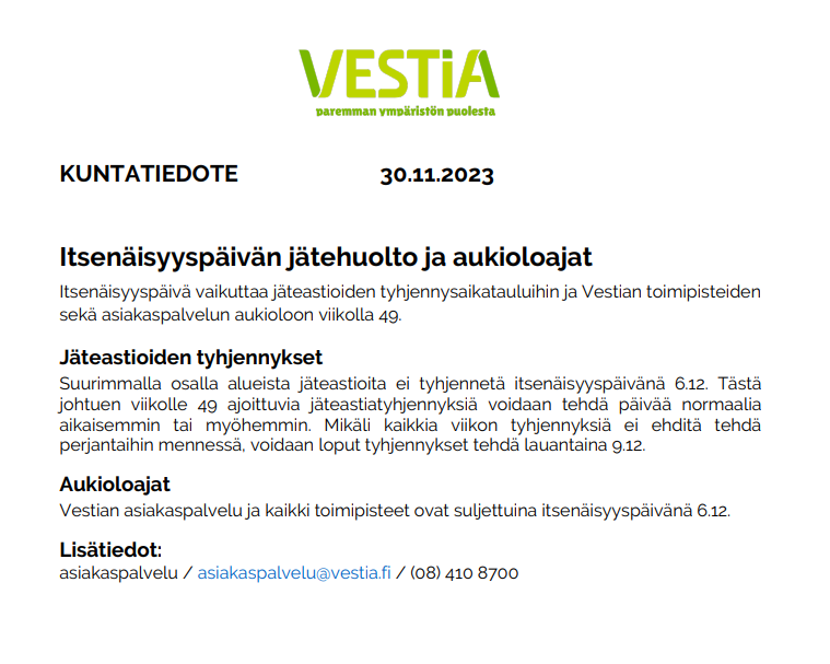 Kunnantalo suljettu 6.12.2023
